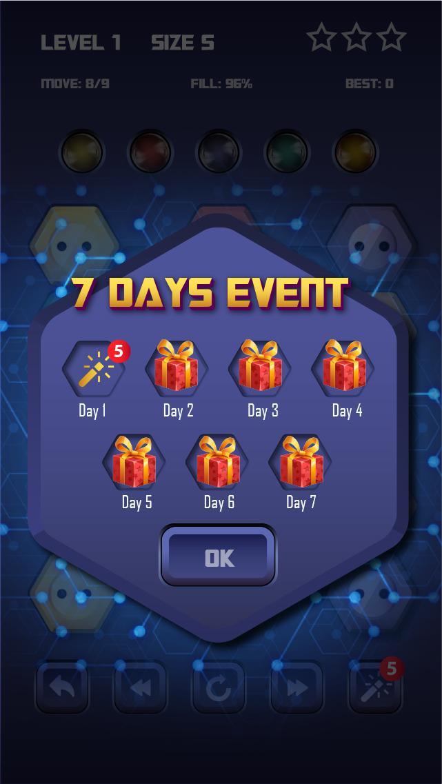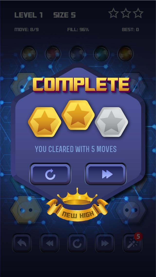 • Combina todos los puntos con el mismo color y asegúrate de cubrir todo el tablero para resolver cada nivel sin flujo: hexa de color de línea eléctrica. Conecte puntos con colores coincidentes con una línea para crear un flujo o una tubería. (como plomero)